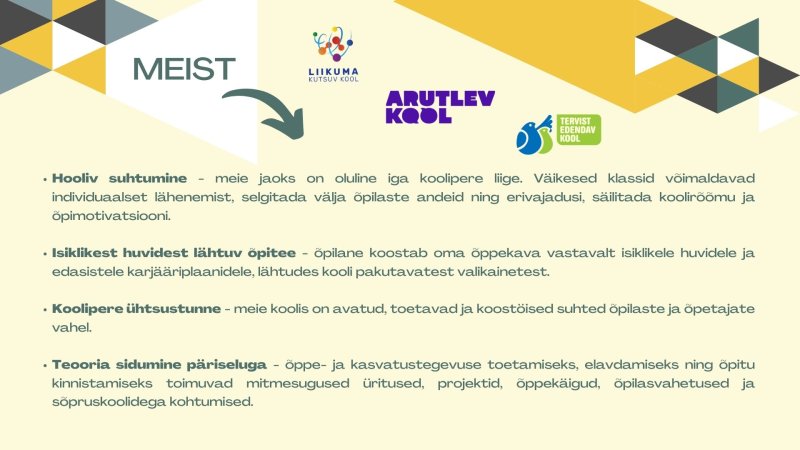 Lisaks pakume mitmeid eeliseid: tasuta koolilõuna ja õppevahendid, renoveeritud