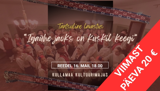 Kui tead, et kahjuks ei saa etendust vaatama tulla, kuid siiski soovid Kullamaa noori rahvatantsijaid toetada, saad panustada annetusega alates 50 €.