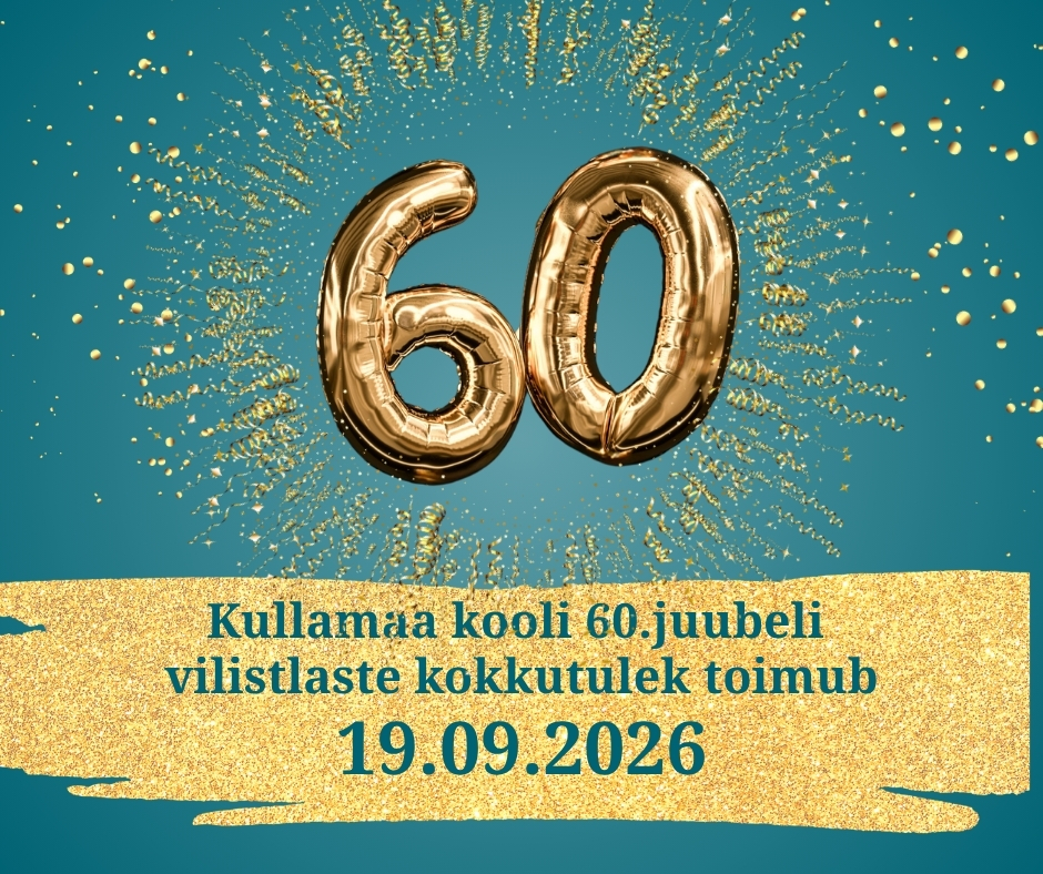 Kullamaa kool tähistab 60. juubelit võimsa vilistlaste kokkutulekuga 19. septembril 2026. Täpsem info ning piletimüügi algus juba õige pea.