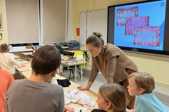 Carine Jõevee, kes rääkis õpilastele suuhügieenist. Koos õpiti ka õigesti hambaid pesema.